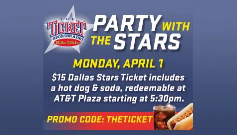 It’s The Ticket’s Ultimate Fan Experience with the Dallas Stars Party on the Plaza! Monday, April 1, starting at 5:30pm to 7:30pm on AT&T Plaza, fans can enjoy the Bud L...